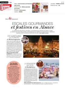 L’un des magazines français le plus vendu, Femme actuelle, a sélectionné les Confitures du Climont pour ouvrir un bel article de 2 pages consacré aux escales gourmandes et festives en Alsace, début décembre 2025.